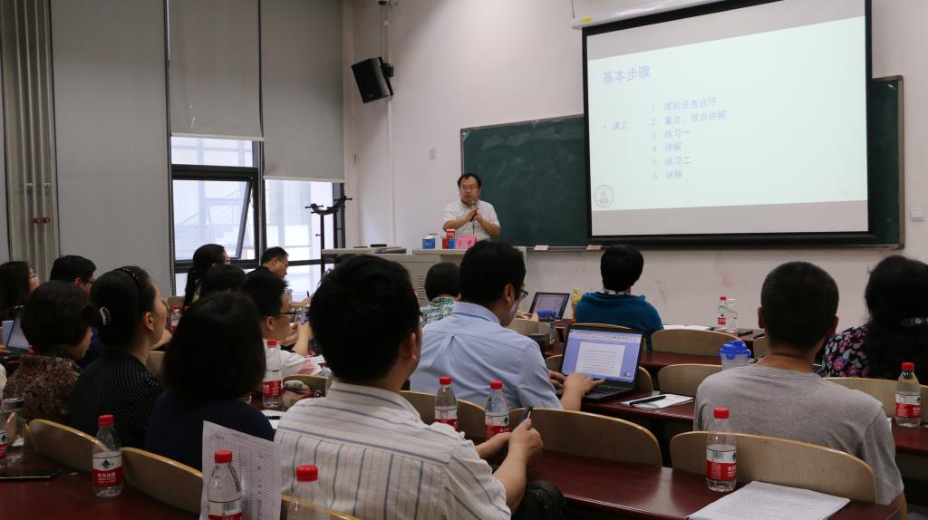 毛副教授从翻转课堂的理论基础和优点着手,详细与讲述分析了翻转课堂的内涵,从课前准备、课上讨论、课后互动评价等环节向大家介绍了实施翻转课堂教学的基本步骤,并以自己的翻转课堂教学为例,现身说法,形象地向教师们演示了如何开展翻转课堂教学,在此基础上引导大家围绕翻转课堂教学的制约因素展开了讨论,进而对翻转课堂教学进行了再探与展望。
